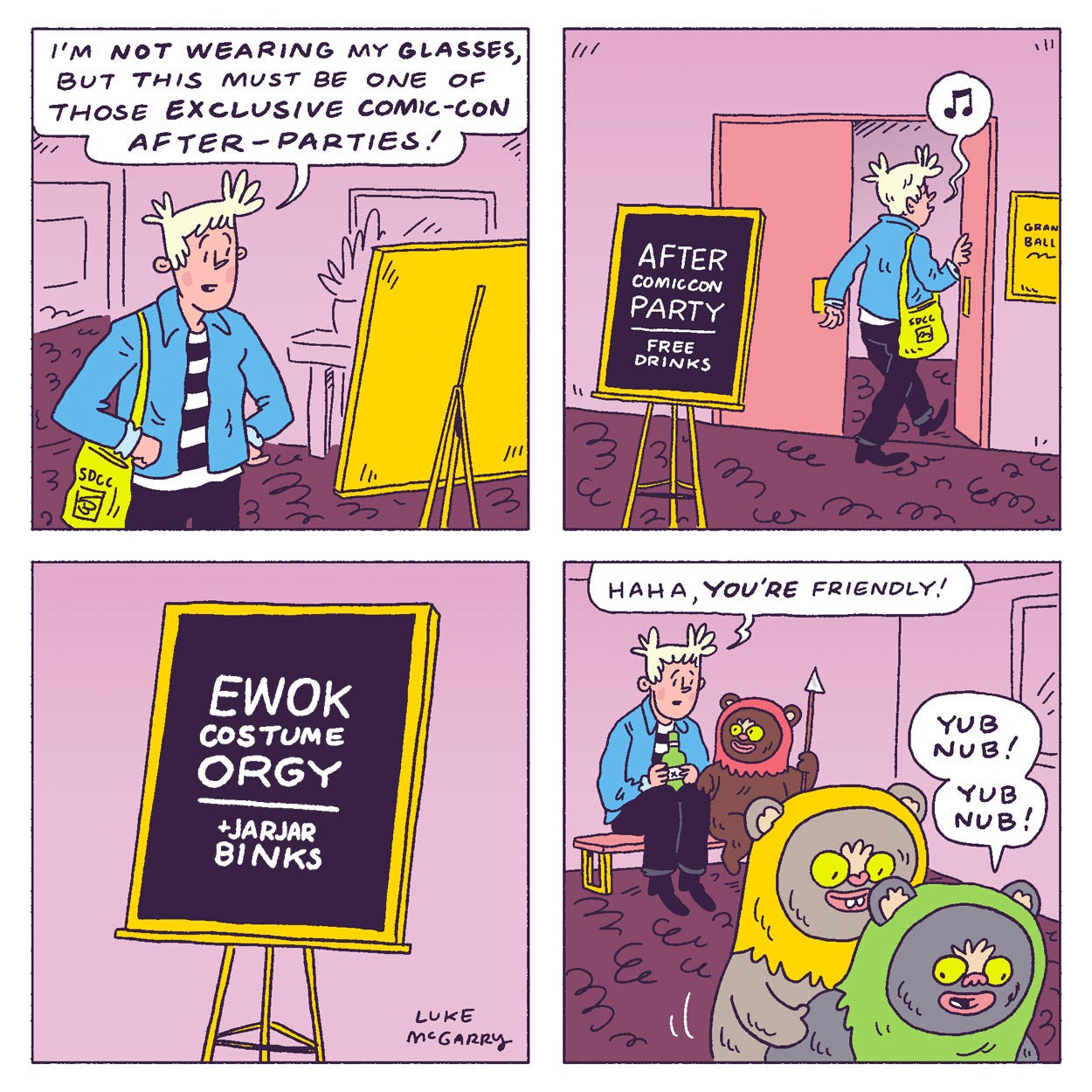Daily CartoonComic Con After PartyYub NubLuke McGarryJul 20, 202561ShareApparently the hotel rooms of Comic Con are full of Furry orgies. I’d just settle for an invite to an open bar.Lukey McGarry is a reader-supported publication. To receive new posts and support my work, consider becoming a free or paid subscriber.SubscribePreviousNext