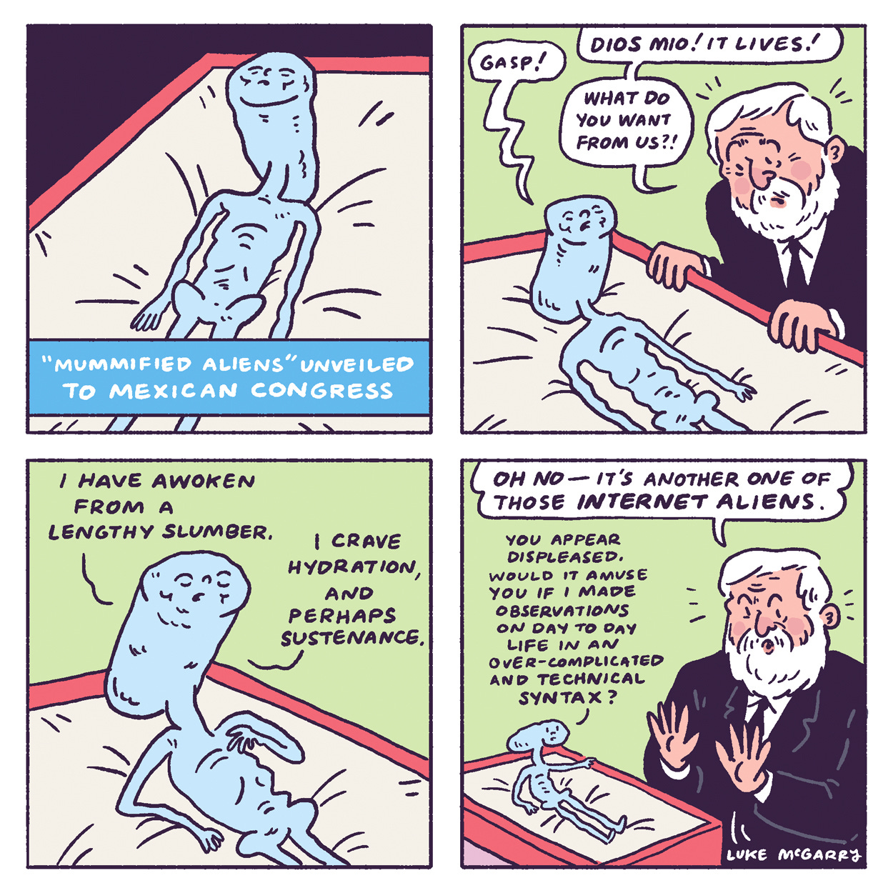 I don’t know why I do so many pieces about the wryly observant internet aliens, or why they’re always kissing, but I do. Thesaurus.com is never busier than when I’m gently poking fun at Strange Planet. I’m sure Nathan Pyle doesn’t mind… or notice.